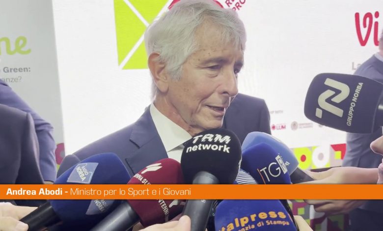 BARI (ITALPRESS) – “Lo sport è materia concorrente con la riforma del Titolo V e noi puntiamo molto sul fatto i due livelli, cioè quello del governo nazionale e quello del governo delle Regioni, concorrano al raggiungimento dell’obiettivo della diffusione dello sport, che non è soltanto vittoria di medaglie ma è pratica diffusa, lo sport per tutti e di tutti”. Lo ha affermato questa sera a Bari il ministro dello Sport Andrea Abodi a margine della cerimonia inaugurale del 3° Festival delle Regioni e delle Province autonome e della firma del protocollo per il Giro delle Regioni di ciclismo.