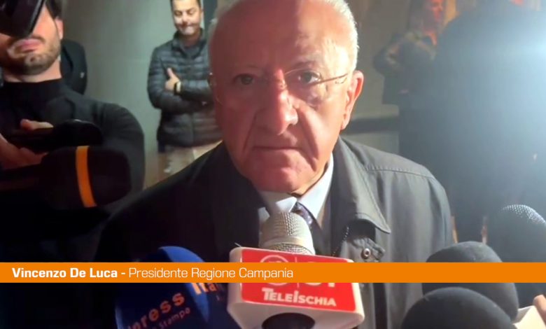 NAPOLI (ITALPRESS) – “Non so assolutamente nulla, apprendo da voi sinceramente. Mi dispiace moltissimo”. Visibilmente sorpreso il presidente della Regione Campania, Vincenzo De Luca, che parlando con i giornalisti a Napoli, a margine dell’evento “La Campania delle Eccellenze”, incentrato sull’assistenza psicologica, risponde così a chi gli chiede un commento sull’inchiesta della Dda di Genova che ha portato all’arresto del presidente della Regione Liguria, Giovanni Toti.
