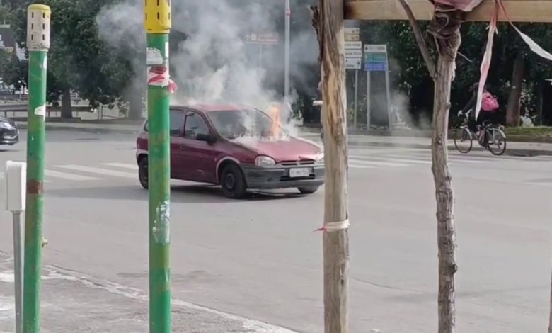 Auto si incendia nel traffico di Palermo, le immagini