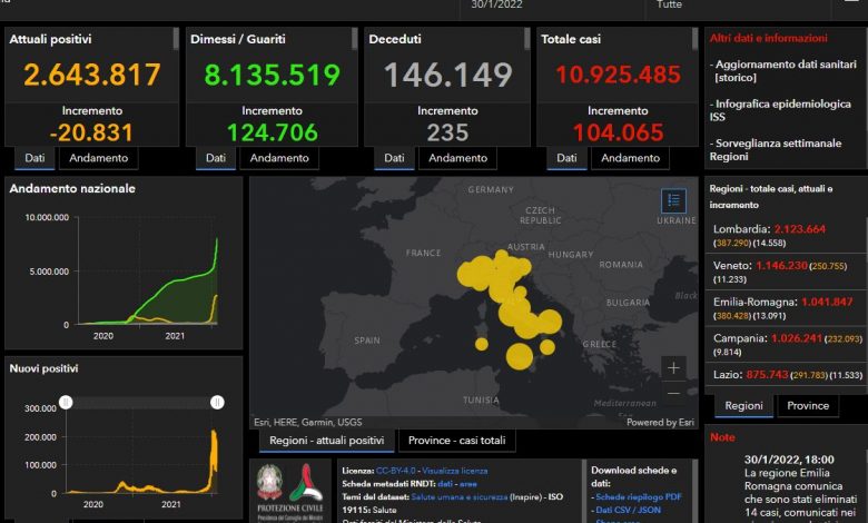La regione con il maggior numero di nuovi casi nelle ultime 24 ore è la Lombardia (14.558), poi l’Emilia-Romagna (13.091), il Lazio (11.533) e il Veneto (11.233).