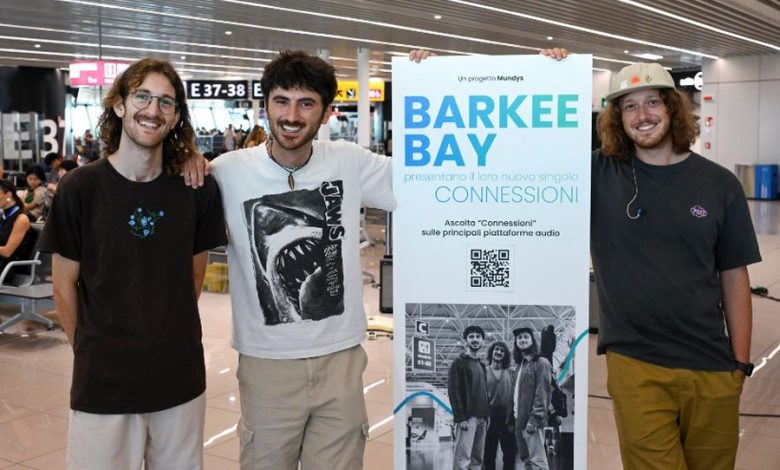 ROMA (ITALPRESS) – Una colonna sonora per i viaggiatori green: è “Connessioni”, il singolo dei “Barkee Bay”, il nuovo brano, nato dalla collaborazione tra la band esordiente e Mundys, che intende sensibilizzare i passeggeri su come spostarsi in modo sostenibile. I cantautori si sono esibiti in un flash mob all’aeroporto di Roma “Leonardo da Vinci” con uno speciale “Flash Mob(ility)” organizzato da Mundys, società del settore mobilità, al Terminal 3 – Partenze dello scalo capitolino gestito da Aeroporti di Roma (ADR).