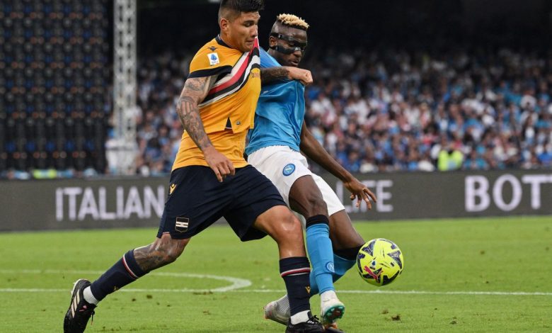 NAPOLI (ITALPRESS) – Festa grande per il Napoli campione d’Italia di Spalletti che, davanti al pubblico delle grandi occasioni, allo stadio ‘Maradonà batte la retrocessa Sampdoria nell’ultima giornata di campionato: 2-0 il finale. Ventottesima vittoria in campionato per gli azzurri che salutano nel migliore dei modi il dimissionario mister Spalletti, principale artefice del terzo scudetto nella storia degli azzurri. Gara a senso unico con il forcing iniziale del Napoli che, dopo tre minuti, si rende pericoloso con Zielinski. Il polacco però manda il pallone alto sopra la traversa da ottima posizione graziando Turk. Al 10′ la risposta doriana con Zanoli che in scivolata calcia in porta, ma Meret neutralizza con una risposta in due tempi. I padroni di casa dominano e, tra il 21′ e il 23′, prima Kvaratskhelia e poi Osimhen sfiorano il gol del possibile vantaggio. Scampato il pericolo, tre minuti dopo la Sampdoria risponde ai partenopei con Quagliarella che di testa, incredibilmente, colpisce male e manda il pallone alto a pochi passi dalla linea di porta nell’ultima occasione da rete del primo tempo. Nella ripresa il Napoli preme il piede sull’acceleratore e, al 62′, Murru investe Osimhen in area blucerchiata. Dopo un breve consulto con il var, l’arbitro Feliciani assegna il calcio di rigore al Napoli, e dagli undici metri Osimhen segna il gol del vantaggio (26esimo centro in campionato e 31esimo della stagione per il nazionale nigeriano). Il Napoli non allenta la sua pressione e, al 70′, il neo entrato Gaetano prova a lasciare la sua firma sul match con una conclusione potente indirizzata all’incrocio dei pali, ma Turk si supera in tuffo e respinge il pallone in angolo. L’undici di Spalletti cerca l’affondo del definitivo ko e, al 40′, Simeone, subentrato qualche minuto prima per Osimhen, dal limite calcia potente sotto l’incrocio per il gol del 2-0. La gara è chiusa ma all’87’ il pubblico del ‘Maradonà si alza è tutto saluta con una standing ovation Fabio Quagliarella che, sostituito da Ivanovic, abbandona il campo in quella che è stata la sua ultima gara nel campionato di serie A con la maglia della Samp.