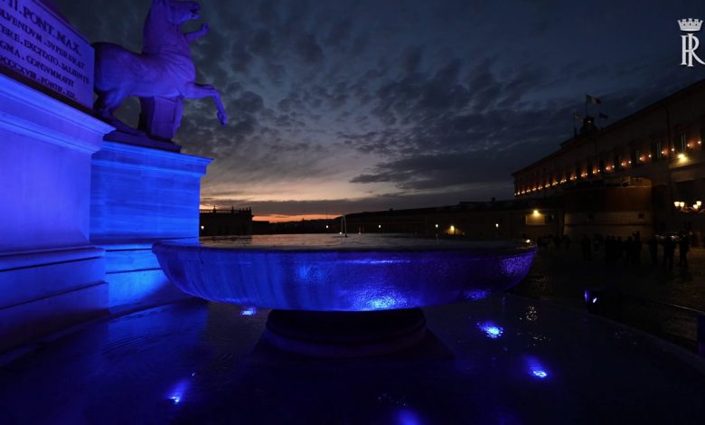 dell’Autismo” istituita dall’Assemblea Generale delle Nazioni Unite. La Fontana dei Dioscuri, sita al centro della Piazza del Quirinale, sarà illuminata di blu fino alla mezzanotte di domenica 2 aprile.