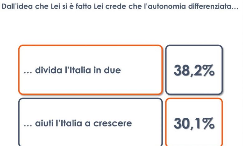 Autonomia, per il 38% degli italiani dividerà il Paese in due