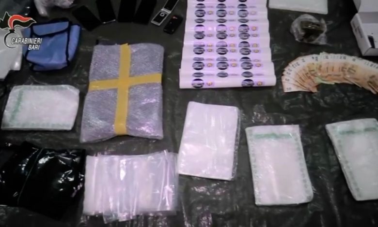 BARI (ITALPRESS) – Dalle prime ore di questa mattina, i Carabinieri del Comando Provinciale di Bari, con il supporto dei militari dello Squadrone Eliportato Cacciatori di Puglia, del 6° Nucleo Elicotteri e del Nucleo cinofili di Modugno, a conclusione di un’ampia indagine coordinata dalla Direzione Distrettuale Antimafia della Procura della Repubblica del capoluogo pugliese, stanno eseguendo un’ordinanza di custodia cautelare a carico di 56 indagati, ritenuti appartenenti a un sodalizio criminale di tipo mafioso-camorristico operante nella città metropolitana e nella provincia barese, dedito perlopiù al traffico di sostanze stupefacenti con modalità mafiose. Nel corso dell’attività investigativa, dal 2017 al 2020, sono già stati sequestrati circa 80 kg di hashish, 7 kg di cocaina e 2 kg di marijuana nonchè arrestate numerose persone tra acquirenti e corrieri ed individuati diversi luoghi di stoccaggio del narcotraffico.
